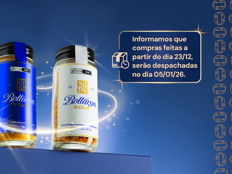 Um prato que atravessa gerações, a Bottarga adquire o respeito dos maiores chefs da cozinha internacional. Reconhecido na Europa como o Caviar Mediterrâneo, Bottarga Gold é produzido a partir da ova de tainha pescada no mar de Santa Catarina, no sul do Brasil.